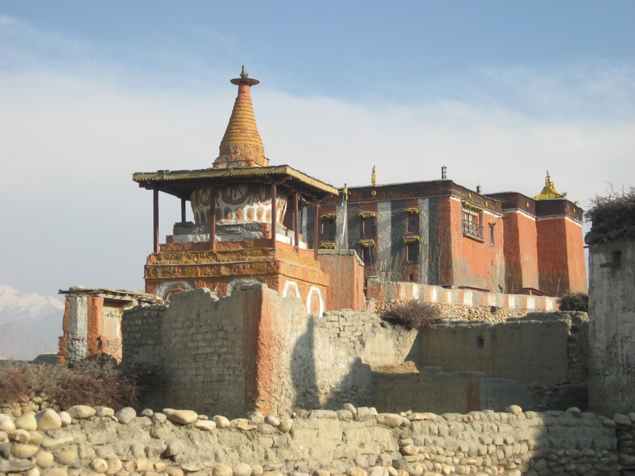 Previously an independent kingdom, founded around 1380, within the borders of what is now Nepal, the region had very strong ties to Tibet and was ruled by a king from the walled town of Lo Manthang. Located in broad upper valley plains of the Gandaki River, the kingdom was encircled by mountains and sheltered from outside influence. As a result, the lifestyle, beliefs and culture of the residents has changed little. The beautiful walled architecture of Lo Manthang is living museum of past centuries. At the northern end of the town is the Choede Monastery, constructed around 1710. It is a wonder of local architecture, decorative arts and Buddhist tradition.
