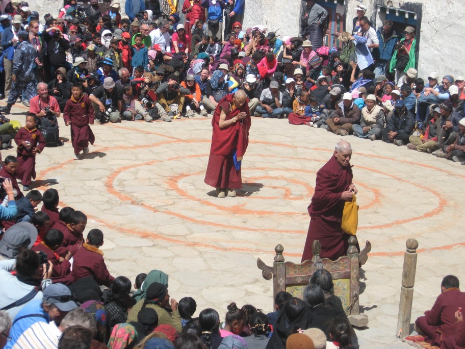 The Tiji Festival is held annually, over three days, around the end of May. The festival is focused upon the Choede Monastery courtyard and three highly symbolic dances. The dances celebrate the defeat of the demon Man Tam Ru, a cannibal that sought the destruction of Lo Manthang and its people. In Buddhist historical belief, Dorjee Sonnu, a reincarnation of the Buddha, confronts and banishes the demon and thereby protects the Kingdom of Lo forever more.